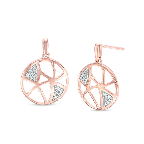Unique and intriguing, these sparkling petite diamond drop earrings amp up your fashion volume. Crafted in precious 10K rose gold, each round dangle is segmented into abstract open sections – two filled with shimmering diamonds. Charming with 0.065 ct. t.w. of diamonds and a bright polished shine, these geometric earrings secure comfortably with friction backs.