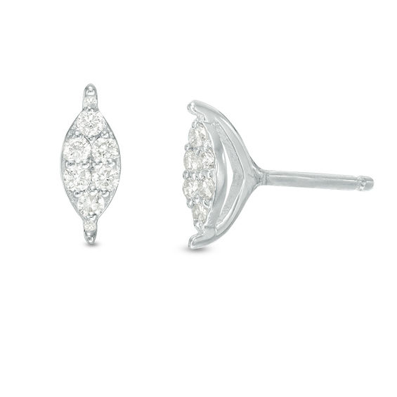 Top off your look with the dainty sparkle of these diamond stud earrings. Crafted in sterling silver, each earring features a marquise-shaped composite of shimmering diamonds held in a unique post setting. Radiant with 0.09 ct. t.w. of diamonds and a bright polished shine, these earrings secure comfortably with friction backs.