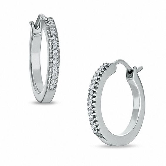 Every woman deserves a pair of beautiful hoops to sweetly frame her face. Why not treat her to a pair perfectly adorned in round diamonds totalling 0.09 ct. These sterling silver styles will draw in attention from all sides of the room. She’s sure to love the look and the shine. These earrings feature hinged backs for a secure fit.