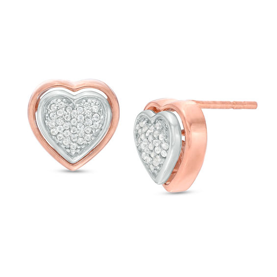 Remind her of your affection with these fashion heart stud earrings. Crafted in sterling silver with precious 14K rose gold plate, each puffed heart-shaped look shimmers with a centre composite of diamond accents. Captivating with 0.11 ct. t.w. of diamonds and a bright polished shine, these post earrings secure comfortably with friction backs.