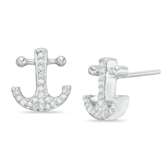 Don’t worry matey, these charming diamond anchor stud earrings won’t hold you down. Crafted in sterling silver, each anchor earring is lined with diamonds and finished with bead details. Captivating with 0.12 ct. t.w. of diamonds and a bright polished shine, these post earrings secure comfortably with friction backs.