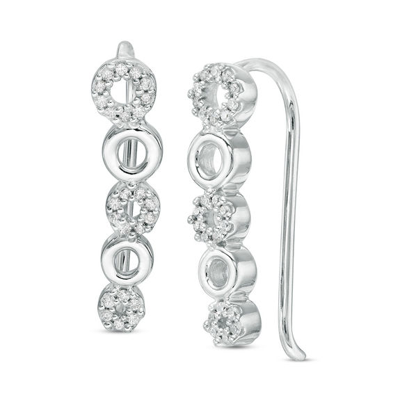 Complement any attire with these darling diamond crawler earrings. Crafted in sterling silver, each earring showcases a row of alternating polished and dazzling diamond-lined circles. So fun with 0.15 ct. t.w. of diamonds and a bright polished shine, these flirty earrings secure with long wire backs that stabilize the climbing design.