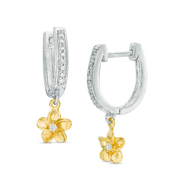 With the perfect amount of shimmer, these charming hoop earrings complement any attire. Crafted in sterling silver, each dainty diamond-lined hoop boasts a 10K gold flower dangle anchored with a sparkling accent diamond. Radiant with 0.15 ct. t.w. of diamonds and a bright polished shine, these earrings secure with hinged backs.