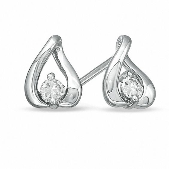 Shaped like a familiar candy kiss, these earrings are certain to delight. Fashioned in 10K white gold, each swirling kiss-shaped frame is set with a single, shimmering 0.08 ct. diamond. Sparkling with 0.16 ct. t.w. of diamonds and buffed to a brilliant shine, these sweet styles top post settings that secure comfortably with friction backs.