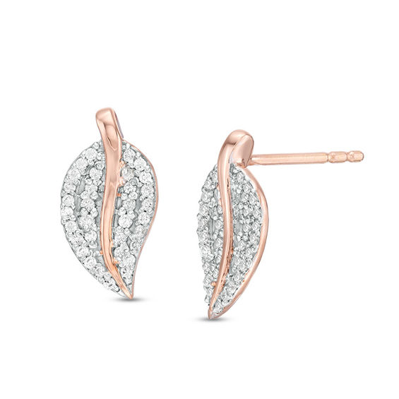 Gracefully poised to become her favourites, these sparkling diamond leaf stud earrings are a refined look for any day of the week. Crafted in precious 10K rose gold, each curved diamond-lined earring features a polished tapered stem. Radiant with 0.20 ct. t.w. of diamonds and a brilliant buffed lustre, these post earrings secure comfortably with friction backs.