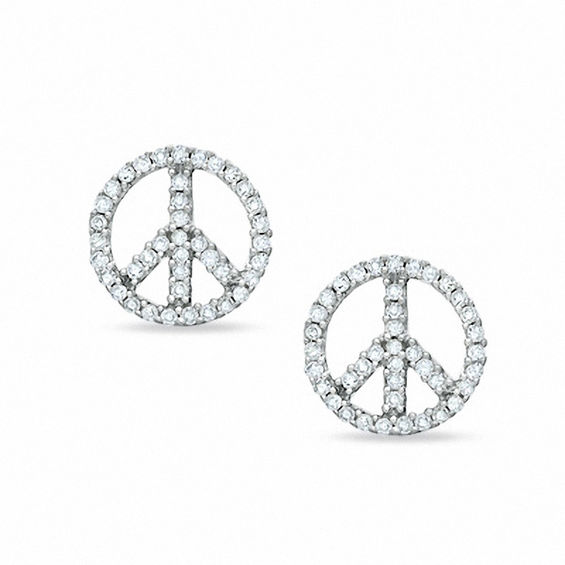 0.25 CT. T.w. Diamond Peace Sign Stud Earrings in 10K White Gold