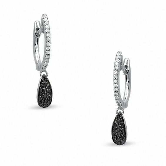 Shimmer, style and black and white diamonds make these drop earrings extra special! Crafted in fine sterling silver, these drop earrings feature a line of shimmering white diamonds, finished with a charming teardrop set with enhanced black diamonds. These 0.25 ct t.w. diamond post-style earrings secure comfortably with friction backs.