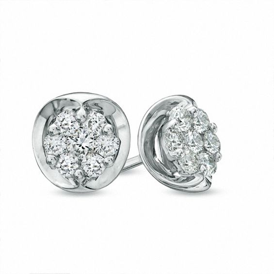 Elegant and understated, these diamond cluster stud earrings are a smart and stylish choice any time. Crafted in 10K white gold, the eye is drawn to the glistening cluster of shimmering round diamonds cradled in a unique and modern setting. Simple yet sophisticated, these earrings captivate with 0.33 ct. t.w. of diamonds and a polished shine. The post earrings secure comfortably with friction backs.