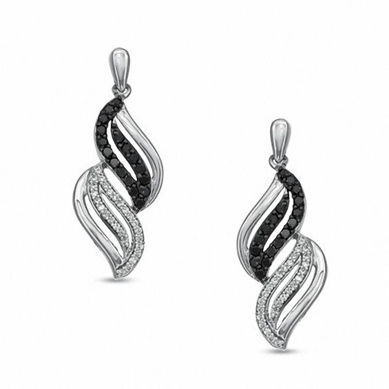 0.50 CT. T.w. Enhanced Black and White Diamond Wave Drop Earrings in