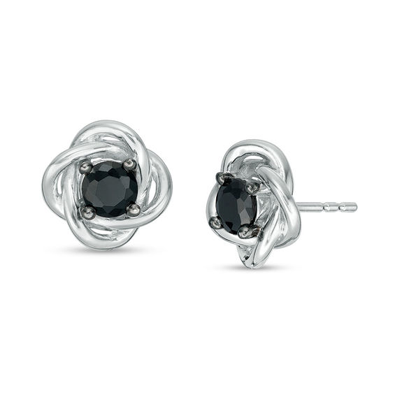 A look of affection, these enchanting black diamond stud earrings elevate her attire. Crafted in cool 10K white gold, each earring shimmers with an alluring 0.29 ct. enhanced black diamond solitaire at the centre of a multi-ribbon love knot frame. Dazzling with 0.58 ct. t.w. of diamonds and a brilliant buffed lustre, these post earrings secure comfortably with friction backs.