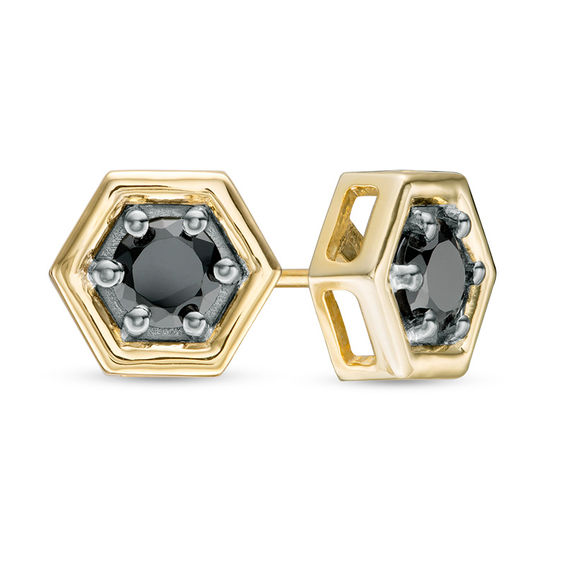 0.69 CT. T.w. Enhanced Black Diamond Solitaire Hexagon Stud Earrings