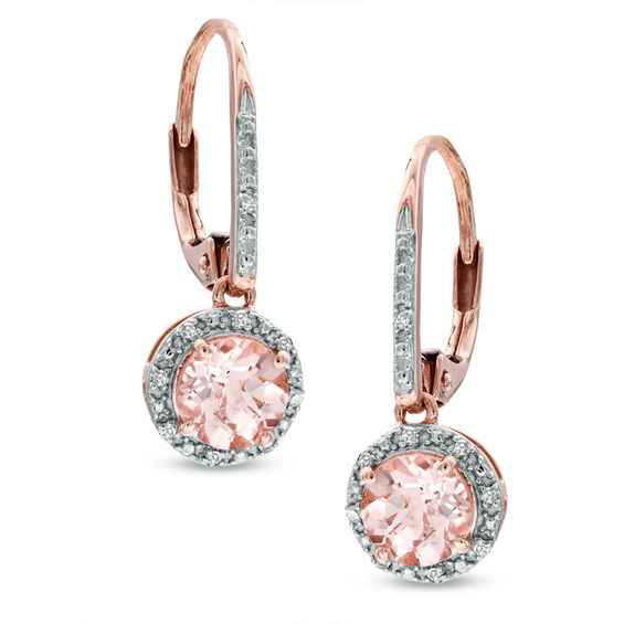 Take her breath away with these stunning fashion earrings. Crafted in 10K rose gold, each design showcases a 6.0mm soft pink morganite centre stone. A frame of shimmering diamond accents surrounds the centre stones and also graces the front of the earring’s lever back closure. A lovely look she’s certain to adore, these sparkling earrings sparkle are finished with a bright polished shine.