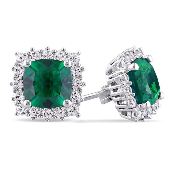 7.0mm Cushion-Cut Lab-Created Emerald and White Sapphire Frame Stud