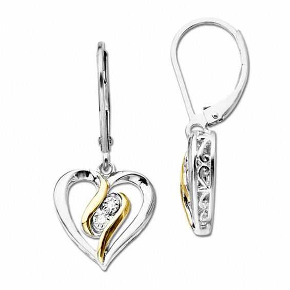 An engaging look she’ll adore, these heart drop earrings grab the eye and don’t let go! Fashioned in sleek sterling silver, these clever open hearts feature 14K gold swirls sweeping across the centre. A duo of diamond accents adds just a hint of sparkle to each drop. Polished to a brilliant shine, these earrings suspend from lever backs.