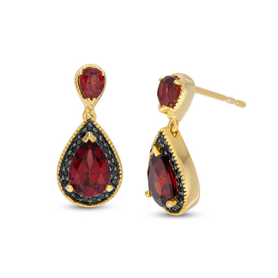 Pear-Shaped Garnet and 0.145 CT. T.w. Enhanced Black Diamond Drop