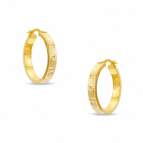 The Greek key pattern represents eternity, the earrings themselves represent style! Fashioned of 10K gold, these lovely hoop earrings feature a continuous Greek key design and a sleek polished finish. A great everyday look, these earrings secure with hinged backs.