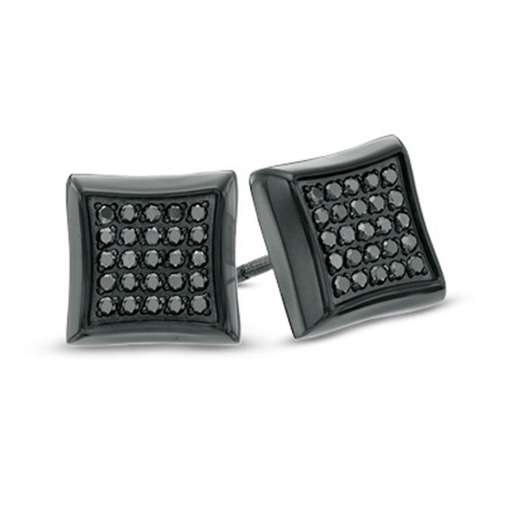 Treat him to these sophisticated diamond earrings. Expertly crafted in black ion-plated stainless steel, each bevelled square showcases an array of elegant enhanced black diamonds artfully arranged at the centre. Glistening with 1/4 ct. t.w. of diamonds and buffed to a brilliant lustre, these earrings secure comfortably with friction backs.