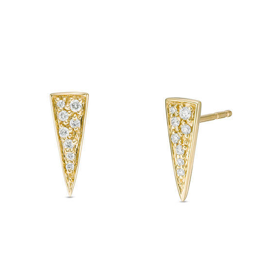 Easy to wear with anything, these petite diamond stud earrings are a fashion must-have. Crafted in warm 10K gold, each elongated triangle-shaped earring features a sprinkling of sparkling diamonds. Shimmering with 0.085 ct. t.w. of diamonds and a bright polished shine, these post earrings secure comfortably with friction backs. Jewellery from the Rea AuRA™ Collection reflects chic fashion and expresses the innate light and splendor of gold. Find free and true beauty with enduring options from this timeless collection.