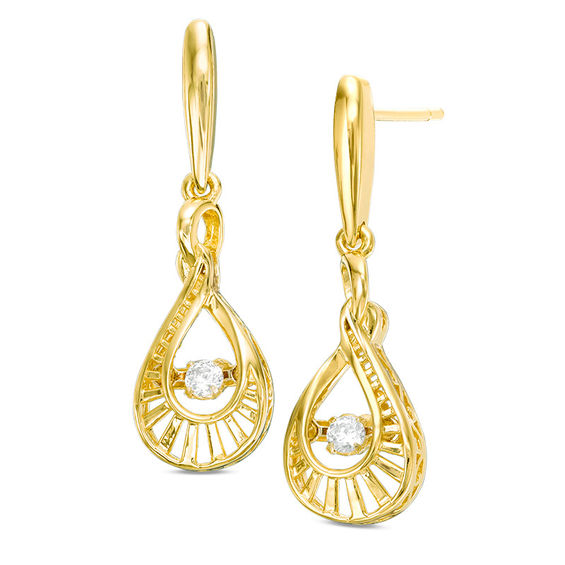 Express your love with these exceptional diamond twist drop earrings from the Unstoppable Love™ Collection. Crafted in warm 10K gold, each graceful track design features polished ribbons that loop in a teardrop-shaped frame. At the centre, a single 0.05 ct. diamond glistens in a unique setting that moves with every beat of her heart and every turn of her head. Radiant with 0.10 ct. t.w. of diamonds and a brilliant buffed lustre, these linear post earrings secure comfortably with friction backs.
