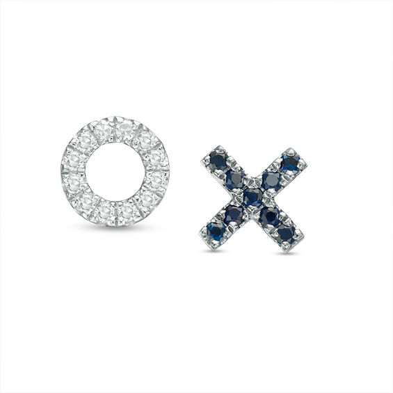 With charming romance from the Vera Wang Love Collection, these dazzling stud earrings deliver your clever message of affection. Crafted in sterling silver, both earrings – one a dainty circle outline of sparkling diamonds and the other a criss-cross of shimmering bright blue sapphires, the signature of the collection and a symbol of faithfulness and everlasting love – combine to lavish her with hugs and kisses. Radiant with 0.04 ct. t.w. of diamonds and a brilliant buffed lustre, these “XO” earrings secure comfortably with friction backs. Vera Wang is exclusively ours.