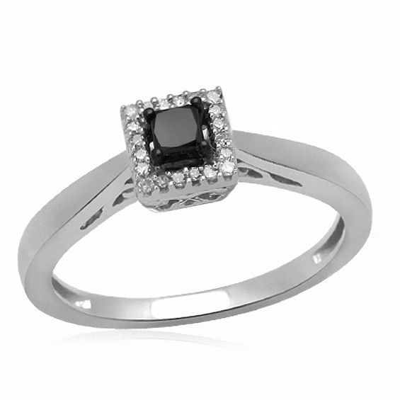 She deserves the very best! On a special occasion – or no occasion at all – treat her to this beautiful ring featuring 0.20 ct. t.w. of diamonds. Fashioned in sleek sterling silver, this ring features a single, shimmering 0.15 ct. prong-set princess-cut enhanced black Mystique diamond framed with glittering white diamond accents. Polished to a brilliant shine, this romantic look is one she’ll choose time after time. Black Mystique Diamonds – bold and brilliant, with a hint of seductive mystery. Due to the nature of pre-owned jewellery, the ring you choose may have been previously sized. Ring styles from our pre-owned jewellery inventory are sold at their current size and cannot be resized at purchase. As this inventory constantly changes, we are unable to state or guarantee the size of any pre-owned ring.