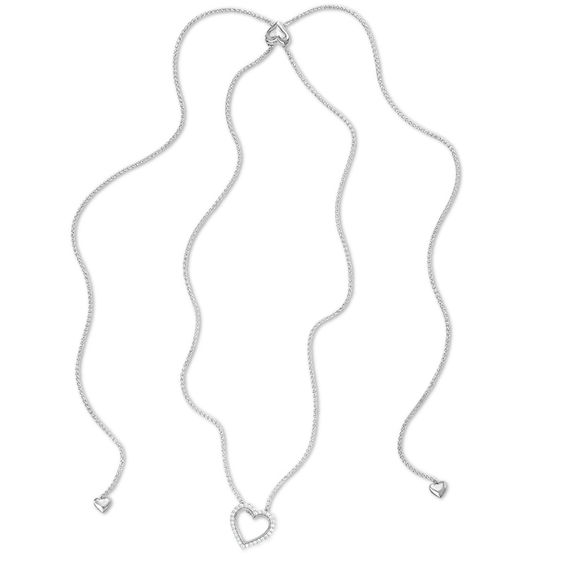 0.23 CT. T.w. Diamond Heart Bolo Necklace in Sterling Silver – 30″