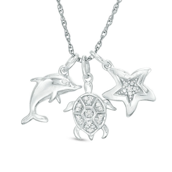 0.04 CT. T.w. Diamond Sea Life Themed Charm Pendant in Sterling Silver