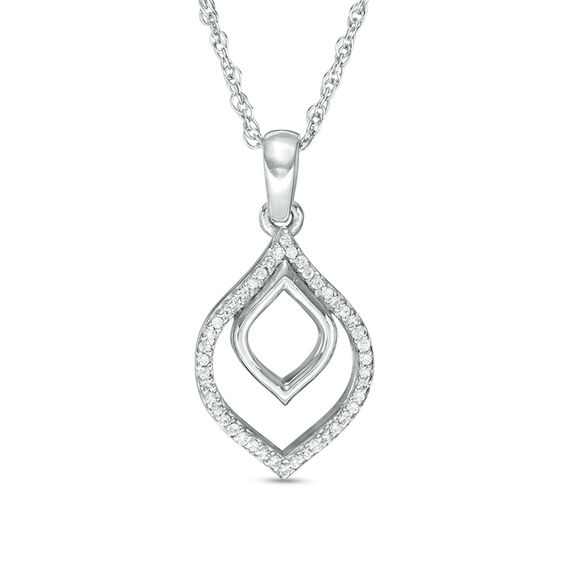 Light a fire of desire for this fabulous flame-shaped diamond fashion pendant with 0.05 cts. of diamonds. Created in sleek sterling silver, this design features a polished flame wrapped with a larger, diamond-lined flame. This dazzling look is buffed to a brilliant shine and suspends freely along an 18.0-inch rope chain that secures with a spring-ring clasp.