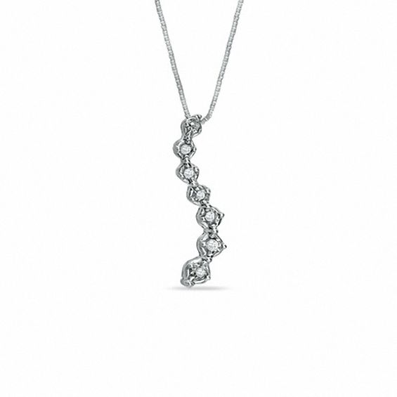 Winding gently along a path of 14K white gold, round diamonds grow in size as they descend to the point of this journey diamond curve pendant. Totalling a beautiful 0.09 ct. in a lovely, organic line, this pendant hangs on an 18.0-inch rope chain with spring-ring clasp. Journey Diamond Jewellery is designed to celebrate love. Graduated stones represent how love grows stronger over time.