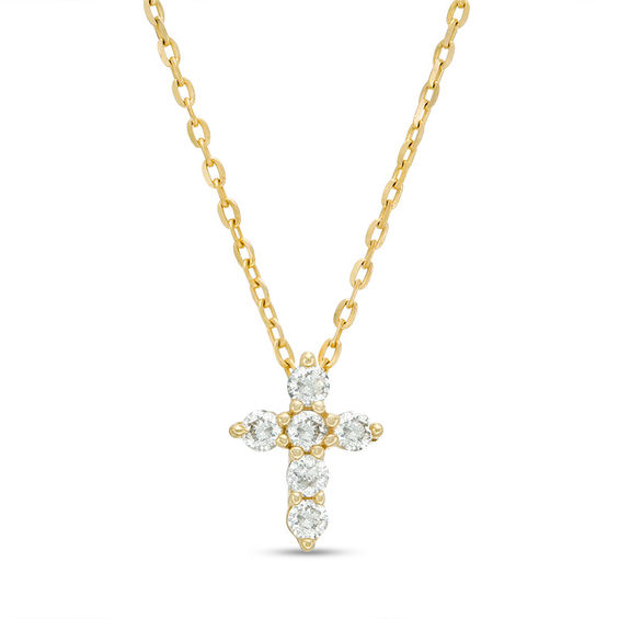 For any special occasion, this petite diamond cross pendant is the perfect gift for your best girl. Crafted in warm 10K gold, this mini cross sparkles with six dainty diamonds. Radiant with 0.10 ct. t.w. of diamonds and a brilliant buffed lustre, this pendant suspends along an 18.0-inch cable chain that secures with a lobster claw clasp.
