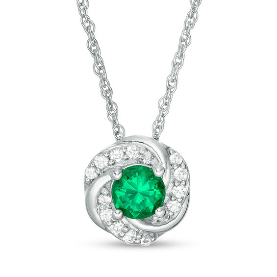 4.5mm Lab-Created Emerald and White Sapphire Swirl Frame Pendant in
