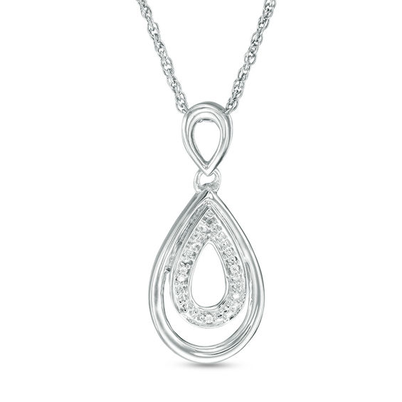 Elevate her attire with this sparkling drop pendant. Crafted in sterling silver, this double teardrop dangle features a diamond-accented and beaded loop inside a polished loop. An open teardrop-shaped bail completes the design. Buffed to a brilliant lustre, this pendant suspends along an 18.0-inch rope chain that secures with a spring-ring clasp.