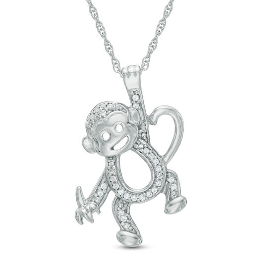 Sweet and spunky, she’ll go positively bananas for this cute little fashion pendant. Fashioned in sleek sterling silver, this charming diamond-accented monkey holds a banana in his hand while his impish grin displays his winning personality. Polished to a brilliant shine, this champion chimp hangs on to an 18.0-inch rope chain that secures with a spring-ring clasp.