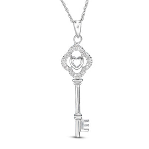 Diamond Accent Heart Key Pendant in Sterling Silver
