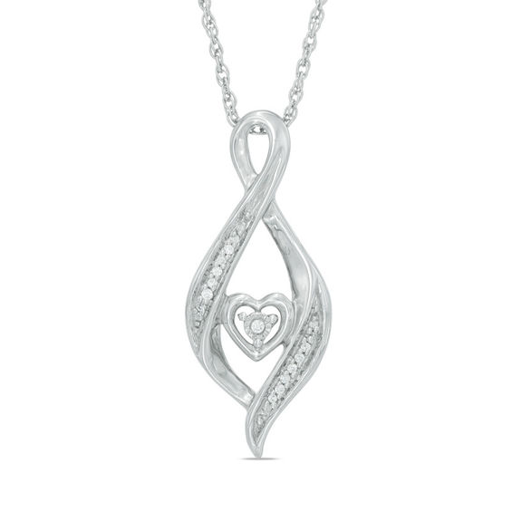 Diamond Accent Infinity Flame with Heart Pendant in Sterling Silver