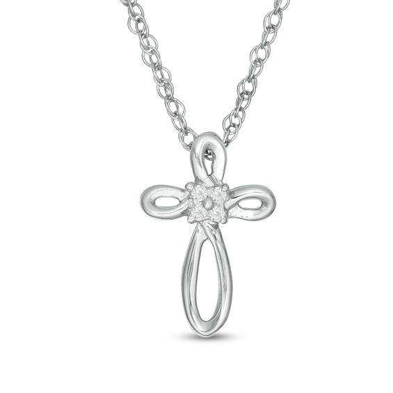 A dainty reflection of her faith, this sparkling cross pendant is a daytime look she’ll treasure. Crafted in sterling silver, this looping cross features four diamond accents at its centre. Buffed to a brilliant lustre, this pendant suspends along an 18.0-inch rope chain that secures with a spring-ring clasp.
