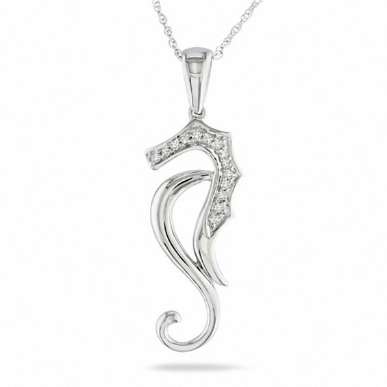 One the most magical underwater creatures, the sea horse is a vision of style and grace. Beautifully crafted in 10K white gold, this elegant sea horse pendant features a row of shimmering diamond accents outlining its head. Buffed to a brilliant lustre, this sweet style suspends along a 17.0- inch rope chain that secures with a spring-ring clasp.