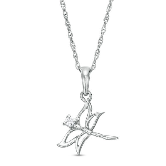 She’ll enjoy the compliments she receives when she wears this sparkling dragonfly pendant. Crafted in sterling silver, this shimmering design features outlined wings, a textured body, and a diamond-accent solitaire at the head. Polished to a bright shine, this pendant suspends slightly askew along an 18.0-inch rope chain that secures with a spring-ring clasp.