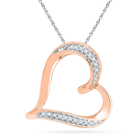 Honour the heart that’s playful and true with this charming heart pendant. Fashioned in precious 10K rose gold, this gracefully looping heart is scattered with shimmering diamond accents and finished with a polished shine. Certain to become one of her most treasured pieces, this heart suspends slightly askew along an 18.0-inch rope chain that secures with a spring-ring clasp.