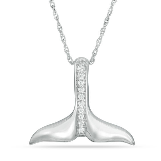 You’ll adore the simplicity and sophistication of this sparkling whale tail pendant. Crafted in sterling silver, this eye-catching design features a vertical row of diamond accents with a graceful whale tail at its base. Buffed to a brilliant lustre, this shimmering anytime pendant suspends along an 18.0-inch rope chain that secures with a spring-ring clasp.