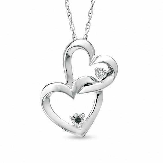 Let this charming pendant be a glistening metaphor for your sweet romance. Created in sleek sterling silver, this design pairs top open hearts – one adorned with an enhanced black diamond accent, the other with a shimmering white diamond accent – linked in an everlasting embrace. Polished to a brilliant shine, this pendant suspends freely along an 18.0-inch rope chain that secures with a spring-ring clasp.