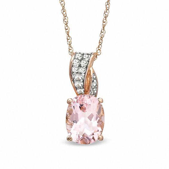 Uniquely designed, this fashion pendant is certain to take her breath away. Well-crafted in precious 10K rose gold, this pendant showcases a striking 9.0 x 7.0mm oval-shaped pale pink morganite centre stone. The cleverly twisting bale glistens with a brilliant array of shimmering lab-created white sapphires add a hint of subtle sparkle. Buffed to a brilliant lustre, this pendant suspends along an 18.0-inch rope chain that secures with a spring-ring clasp.