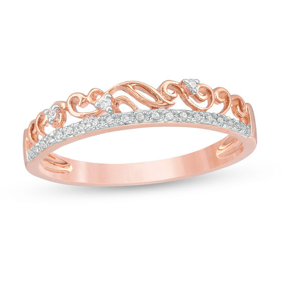 Embrace timeless design with this sparkling diamond filigree ring. Crafted in precious 10K rose gold, this two-row style features a ribbon of petite diamonds and a lovely open-worked filigree above that’s scattered with diamonds. Radiant with 0.04 ct. t.w. of diamonds and a brilliant buffed lustre, this shimmering band is meant to be yours.