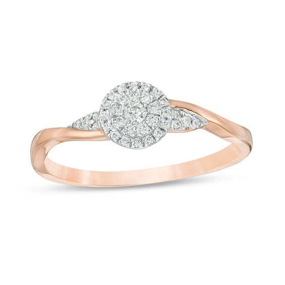 Honour her with the sparkle of this diamond promise ring. Crafted in precious 10K rose gold, this petite design beckons with a round diamond composite. The offset shank sizzles with a diamond-adorned leaf detail. Radiant with 0.145 ct. t.w. of diamonds and a brilliant buffed lustre, this promise ring is meant to be hers.