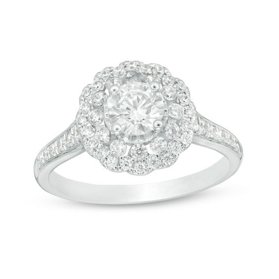 Express all the love you hold in your heart with this certified Canadian diamond engagement ring. Crafted in 14K white gold, this feminine design showcases a 0.30 ct. certified Canadian diamond with a colour rank of I and clarity of I2. The bright centre stone is wrapped in the sparkling embrace of two diamond-lined petal frames, and additional diamonds line the ring’s tapered shank. Radiant with 0.75 ct. t.w. of diamonds and a brilliant buffed lustre, this engagement ring is a splendid choice. This style also comes with a certificate that includes a photo and description of the diamond, which guarantees quality and can be used for insurance purposes.