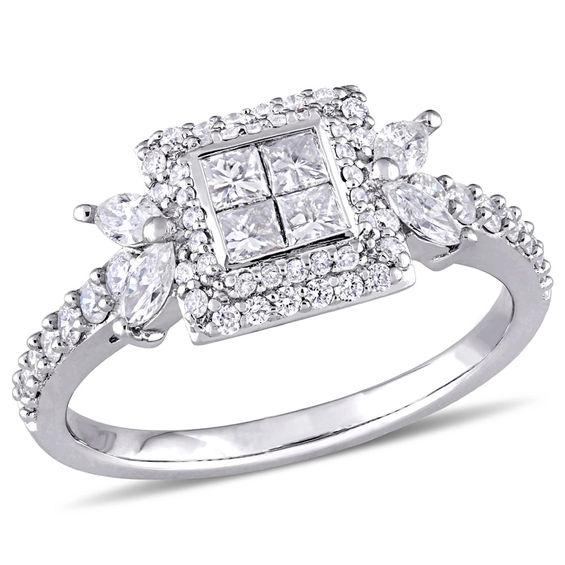 0.91 CT. T.w. Quad Princess-Cut Diamond Double Frame Engagement Ring