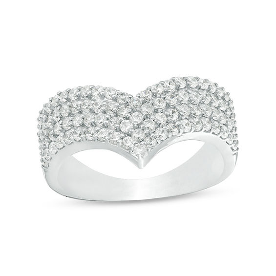A glittering gift of truest love, this diamond ring is just her high style. Crafted in cool 10K white gold, this chevron-shaped design features four rows of shimmering petite diamonds. Captivating with 0.95 ct. t.w. of diamonds and a brilliant buffed lustre, this multi-row band is meant to sparkle for a lifetime.
