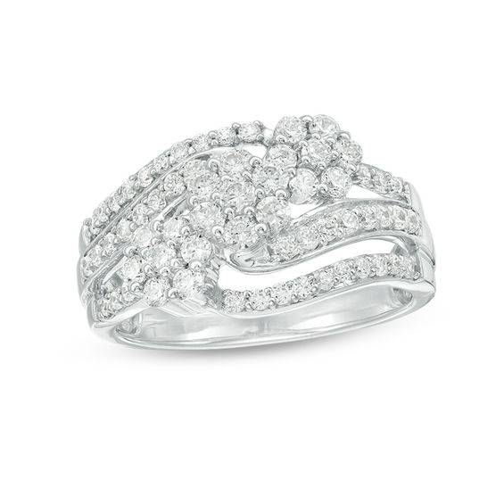 0.95 CT. T.w. Diamond Three Stone Frame Wave Ring in 10K White Gold