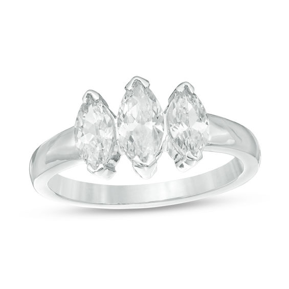Make the moment magical with this radiant three-stone diamond engagement ring. Crafted in cool 10K white gold, this simply designed choice showcases a sparkling trio of marquise-cut diamonds – a 0.38 ct. centre stone flanked by two 0.28 ct. stones – that need no further accompaniment. Captivating with 0.95 ct. t.w. of diamonds and a bright polished shine, this engagement ring proclaims her sophisticated style.
