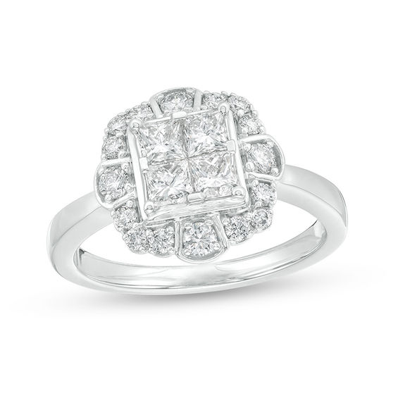 1.00 CT. T.w. Quad Princess-Cut Diamond Scallop Frame Engagement Ring